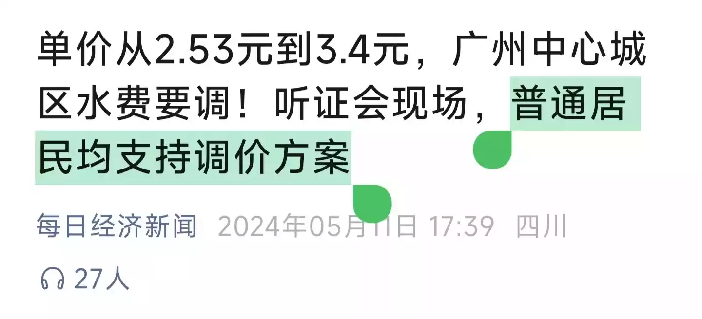 2024年,明确反对自来水涨价、永不妥协的“侠士”韩志鹏先生因肺癌病逝,广州永远地失去了一个不可取代的声音。同年,广州水费立即上涨31%,还称“听证会上17名代表均支持上涨”,彻底将道貌岸然变成了“正大光明”。